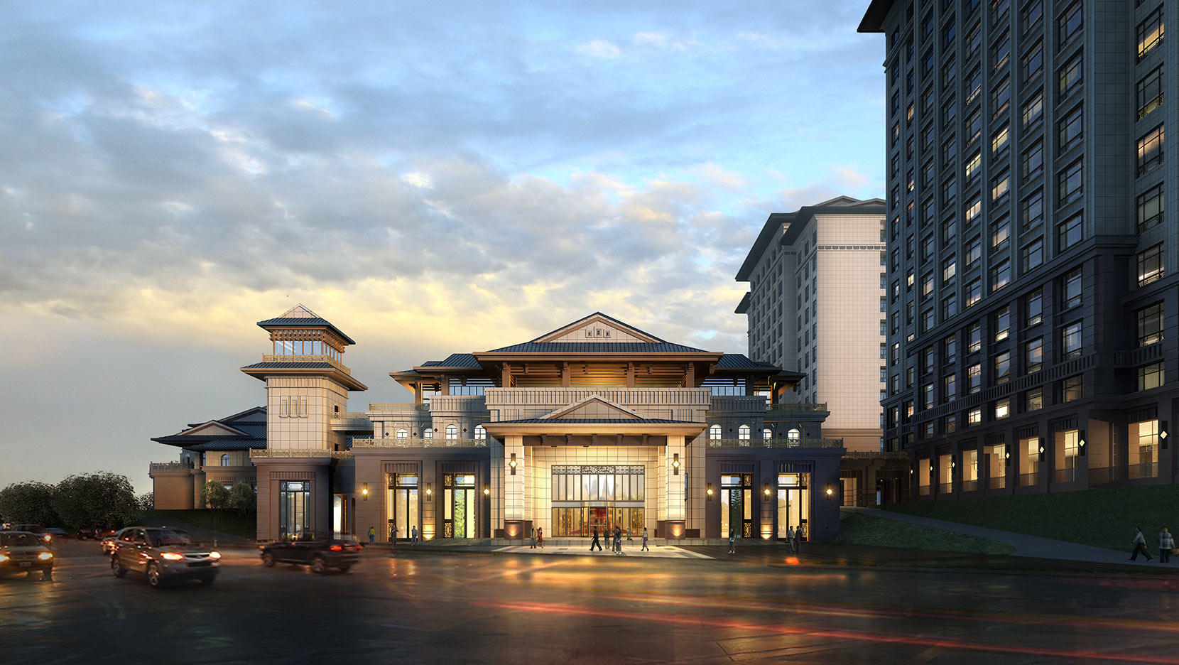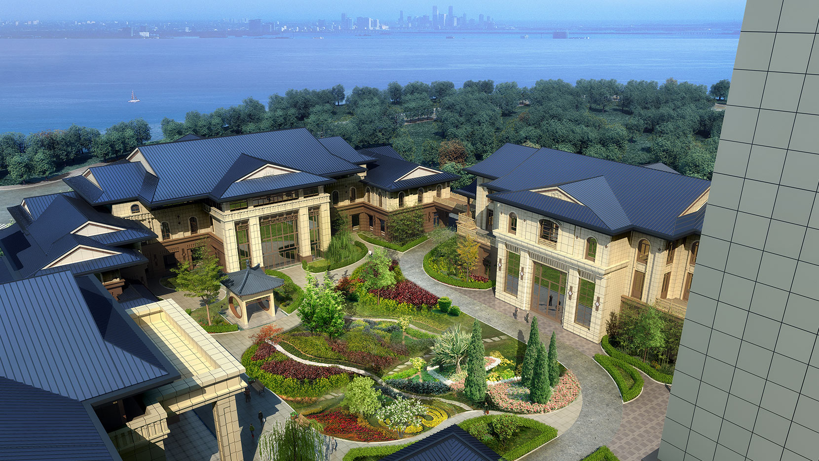 湖北省醫(yī)養(yǎng)康復(fù)中心建筑整體形態(tài)上,以中式民國(guó)風(fēng)為基調(diào)。建筑形體由南到北,形成逐漸升高之勢(shì),沿湖建筑通過(guò)連廊、露臺(tái)深出檐的屋頂與湖景和諧統(tǒng)一。建筑空間最大化地結(jié)合庭院和湖景體現(xiàn)出居家之感,提升空間品質(zhì)。本設(shè)計(jì)充分貫徹了規(guī)劃方案設(shè)計(jì)中生態(tài)設(shè)計(jì)概念,基地四周利用地形高差種植大量階梯狀的綠化帶與綠化休閑廣場(chǎng)形成四面環(huán)繞的優(yōu)美景觀。