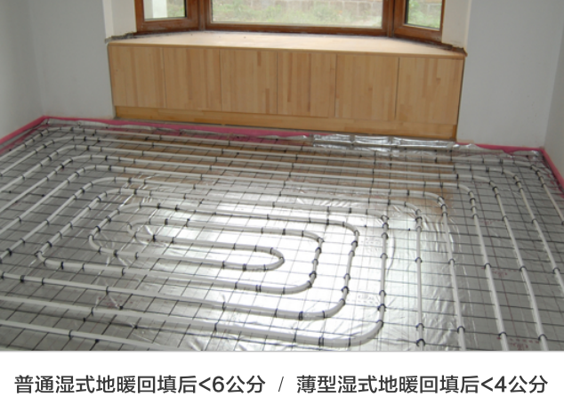 是以溫度不高于60℃的熱水埋置于地面以下填充層中的加熱管內(nèi)循環(huán)流動(dòng),